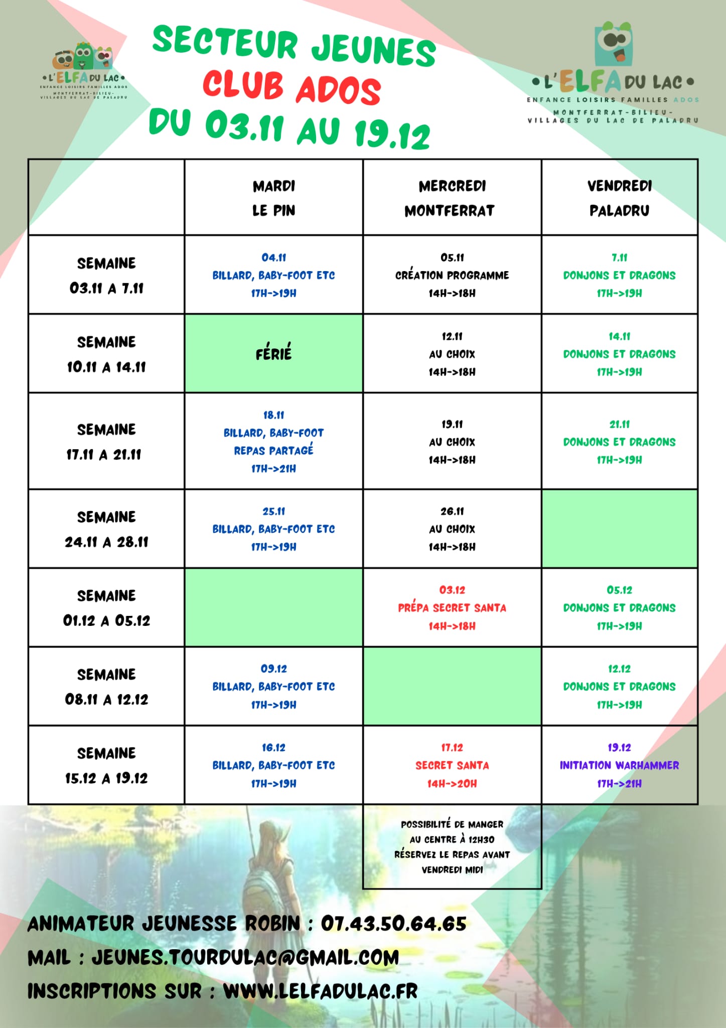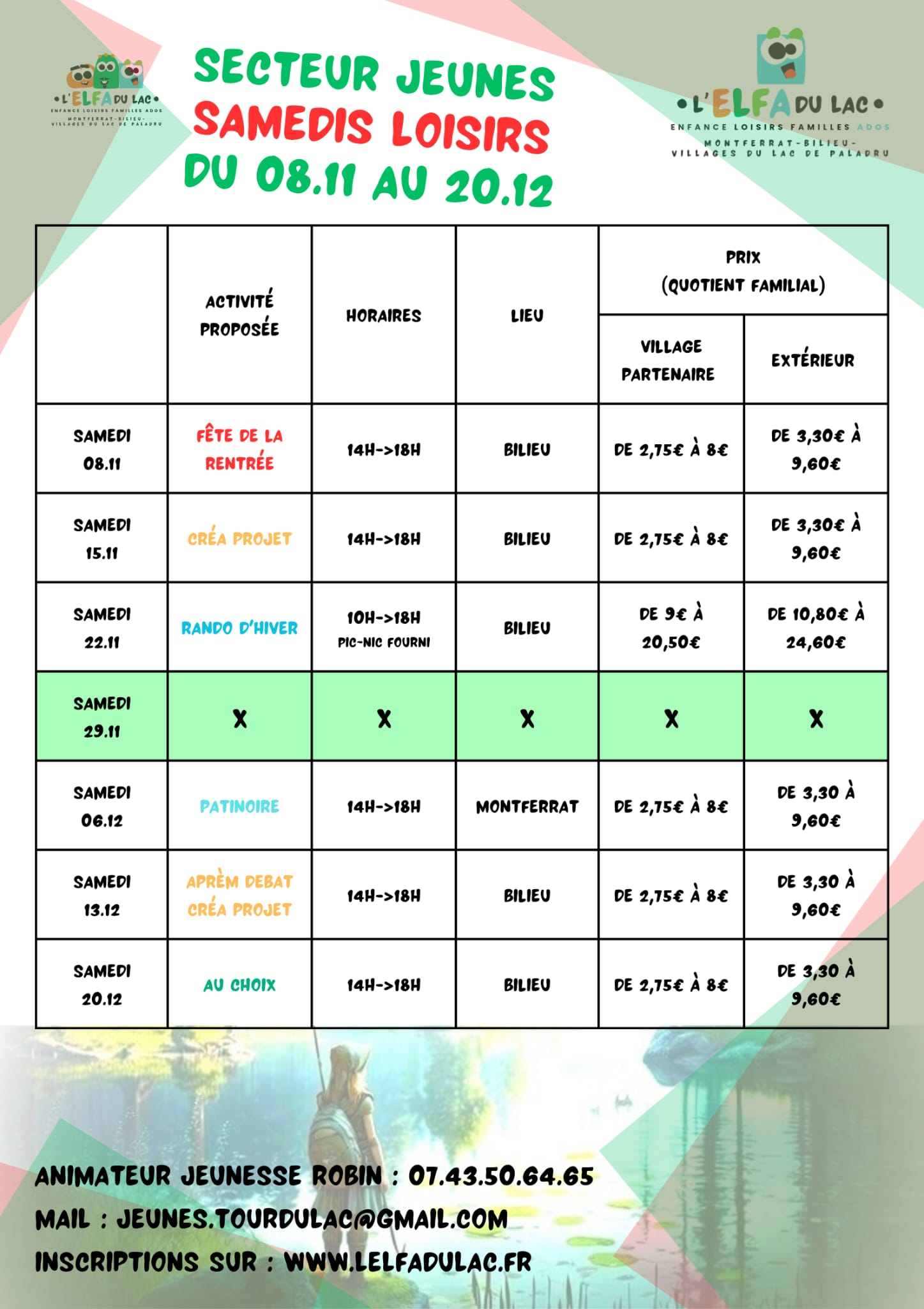 Voici le programme des samedis loisirs jusqu'aux vacances de Noël... Robin vous accueille au P'tit refuge à Bilieu 😁