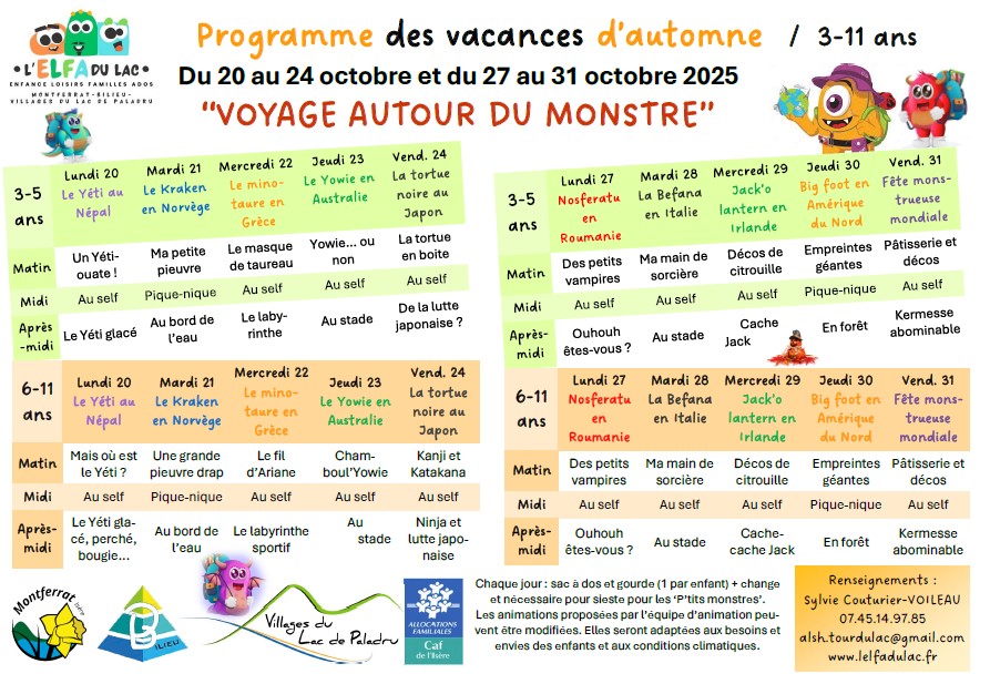 Voici le programme des vacances d'automne pour les 3-11 ans : nous vous proposons un voyage autour du monstre !