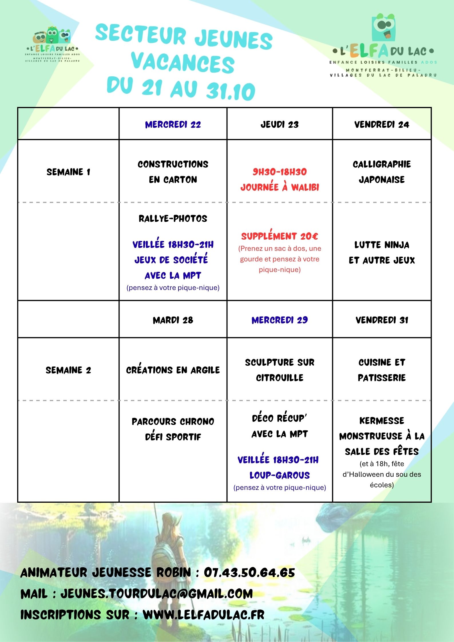 Voici le programme des vacances d'automne pour nos jeunes ! Trois jours "monstrueux " par semaine 😁